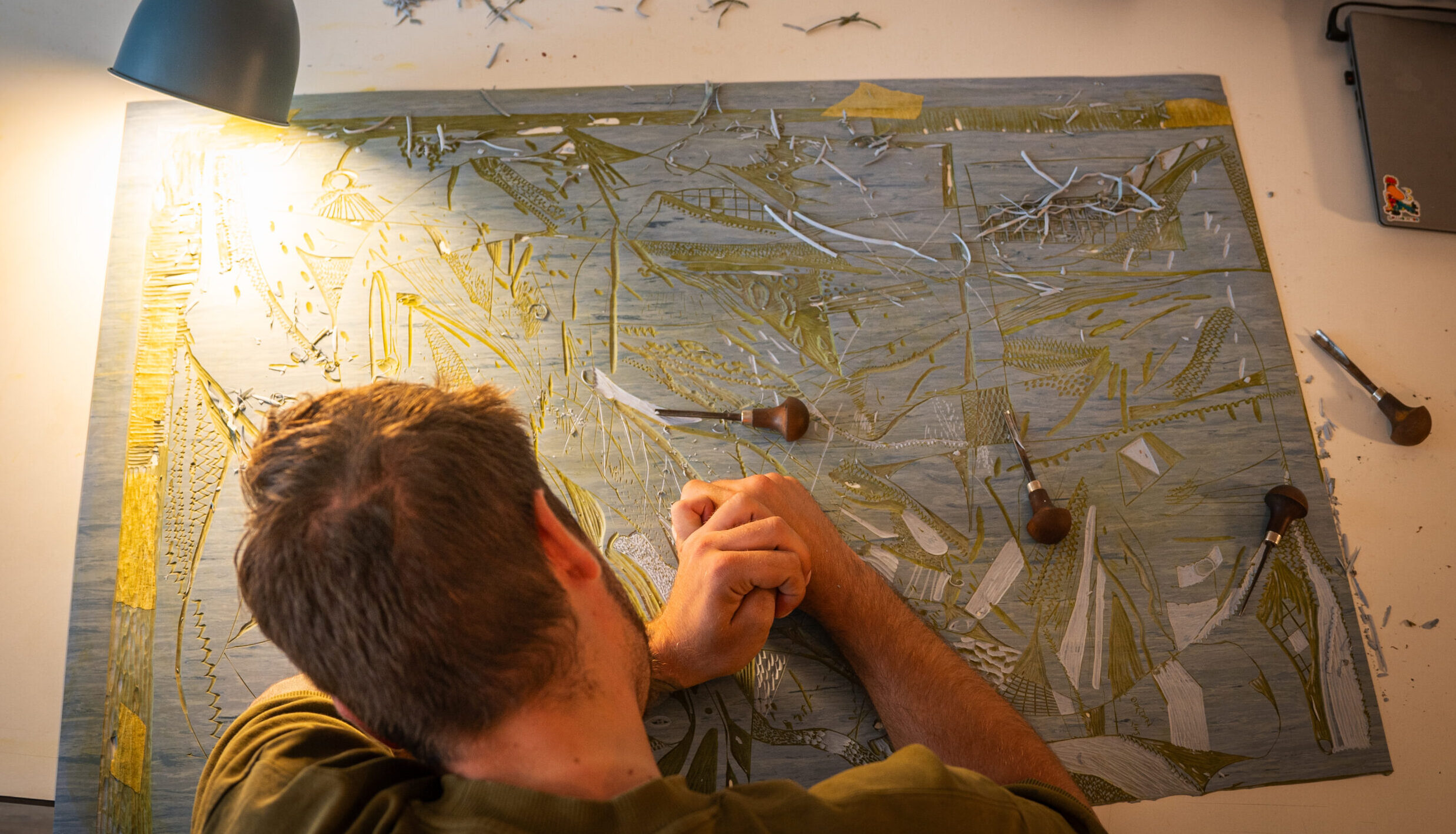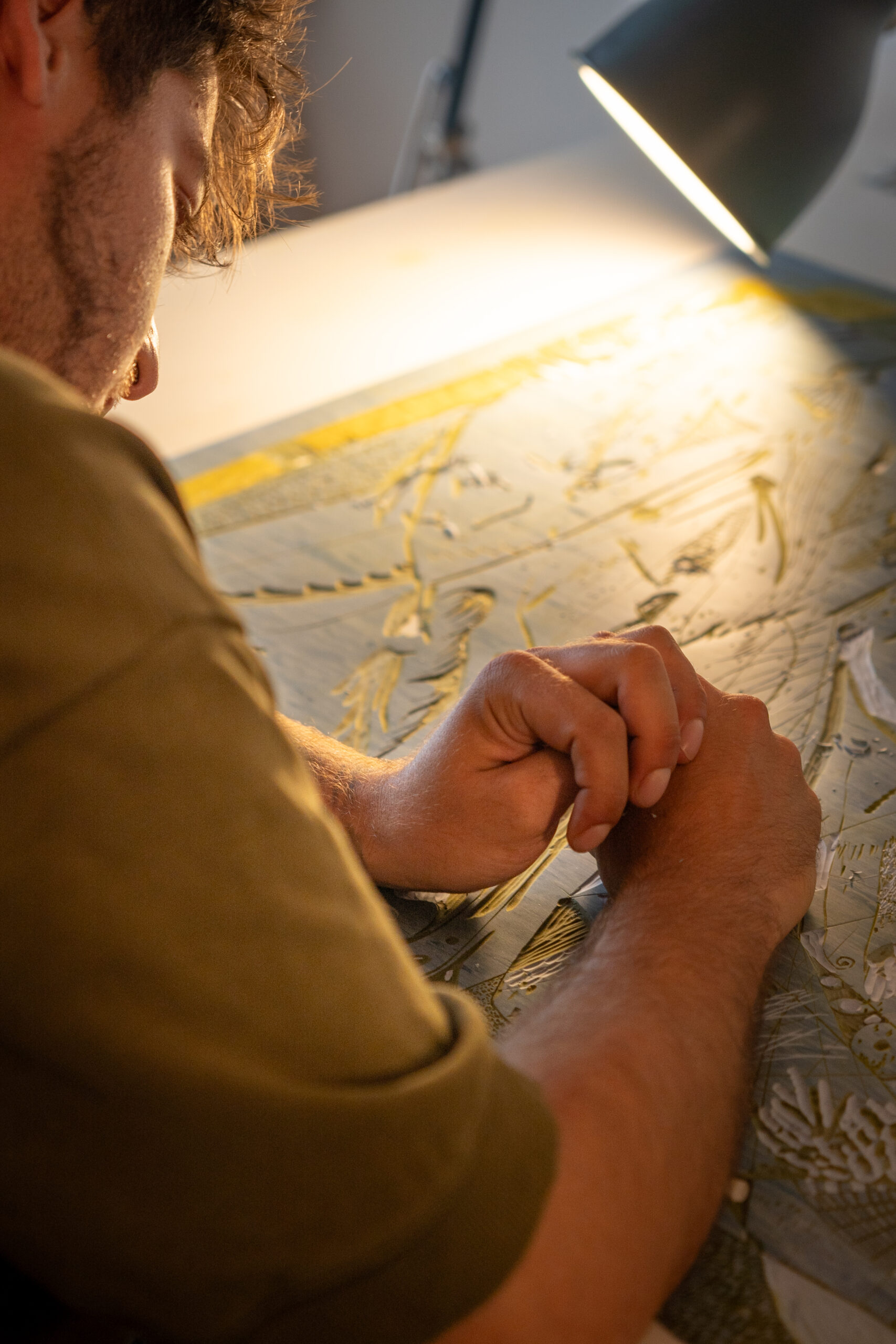 Medium: Carving and offset ink on Linoleum